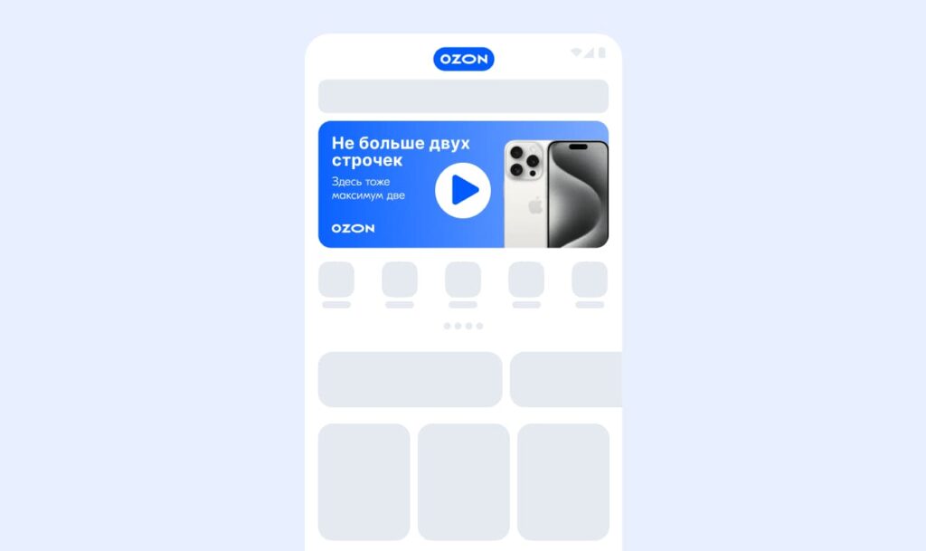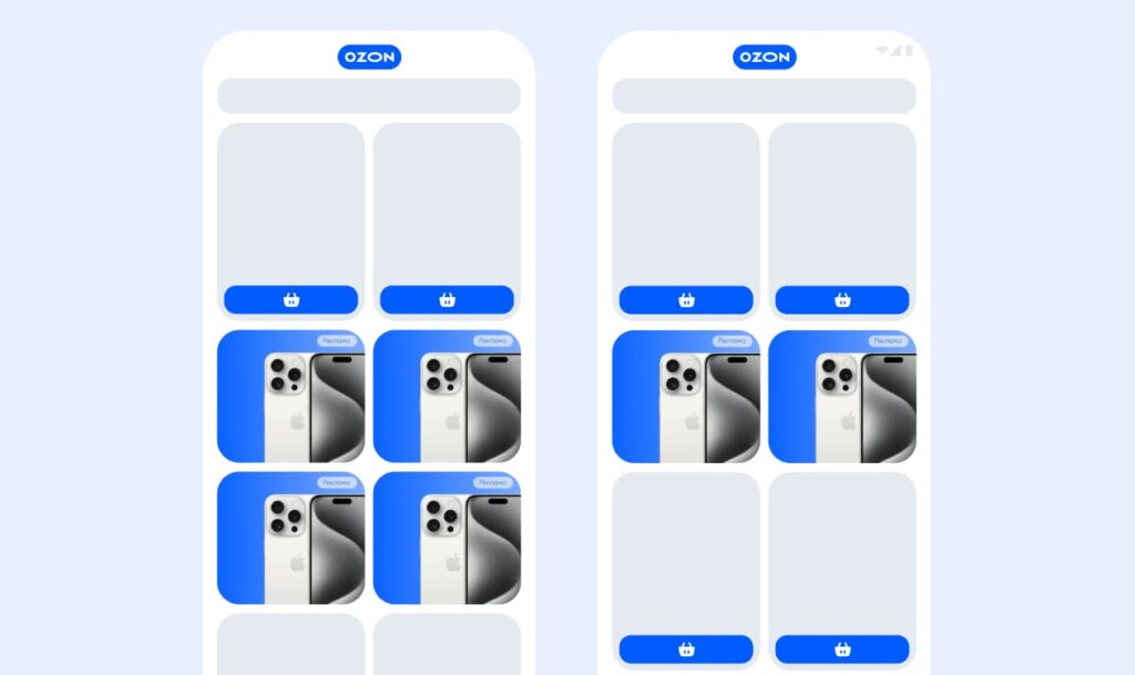 Размещение рекламы товаров и брендов в виде статических изображений с текстом на главной странице сайта и приложения, в результатах поиска и на страницах категорий